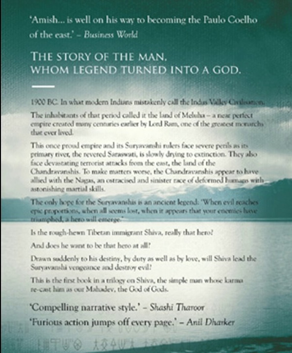 The time setting for this fictional story is 1900 BC. In this book Amish Tripathi, muses about or, should I say, toys around the idea – what if Shiva, one of the three main Gods of the Hindu mythology, was in fact a mortal who lived an exemplary life and eventually became a God due to the heroic actions done during his life time. This story thus uses many of the characters from the actual Shiva purana around which Amish has skillfully woven his own work of fiction. The story in this book has been divided into twenty-six chapters and there are two more books following after this first book.