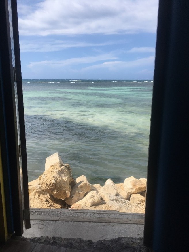 You can see the Caribbean Sea from every window. It is a sight for sore eyes.