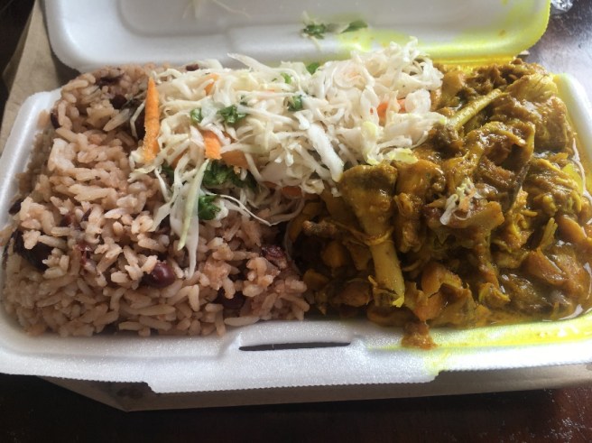 The food was hot and delicious. We ordered Curry chicken. My husband used to get food home from this place several times in the past. I tried Curry Goat, Pumpkin soup and Manish water. All of them tasted great.