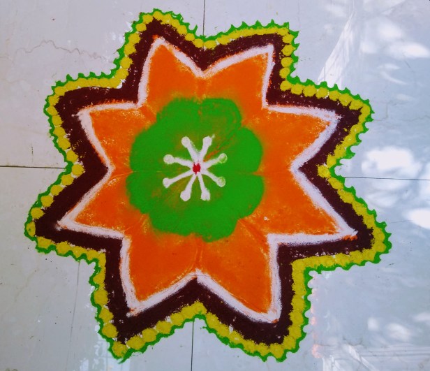 1. I love the beautiful and colorful rangoli designs. It inspires me to try some of them.