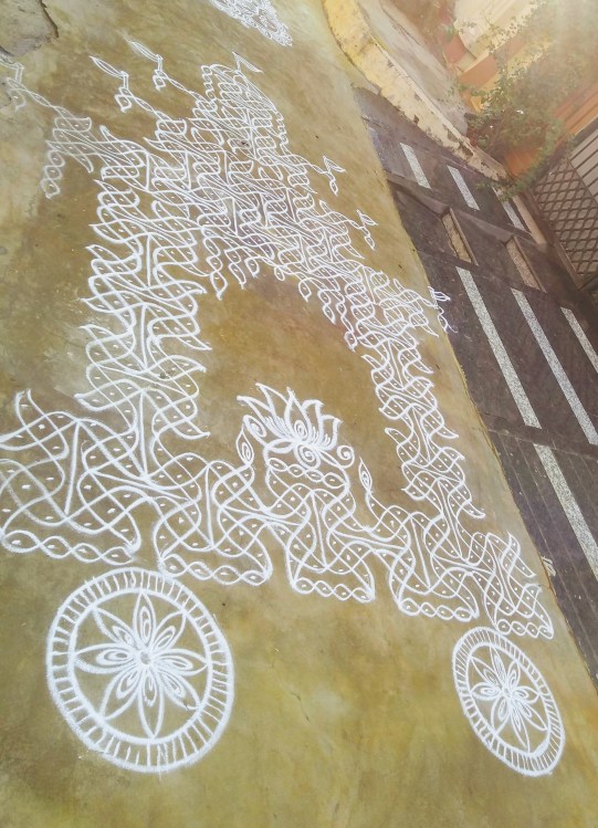 Recently we celebrated Sankranthi in India. It is a farmers festival that indicates the start of the farming season. It is a very grand celebration in villages with festivities spread over 3 days. I will not get into the details of how and why we celebrate Sankranthi, but I would like to speak about one key aspect of Sankranthi. That is the Rangoli or the Kollam that we draw to decorate our houses.
